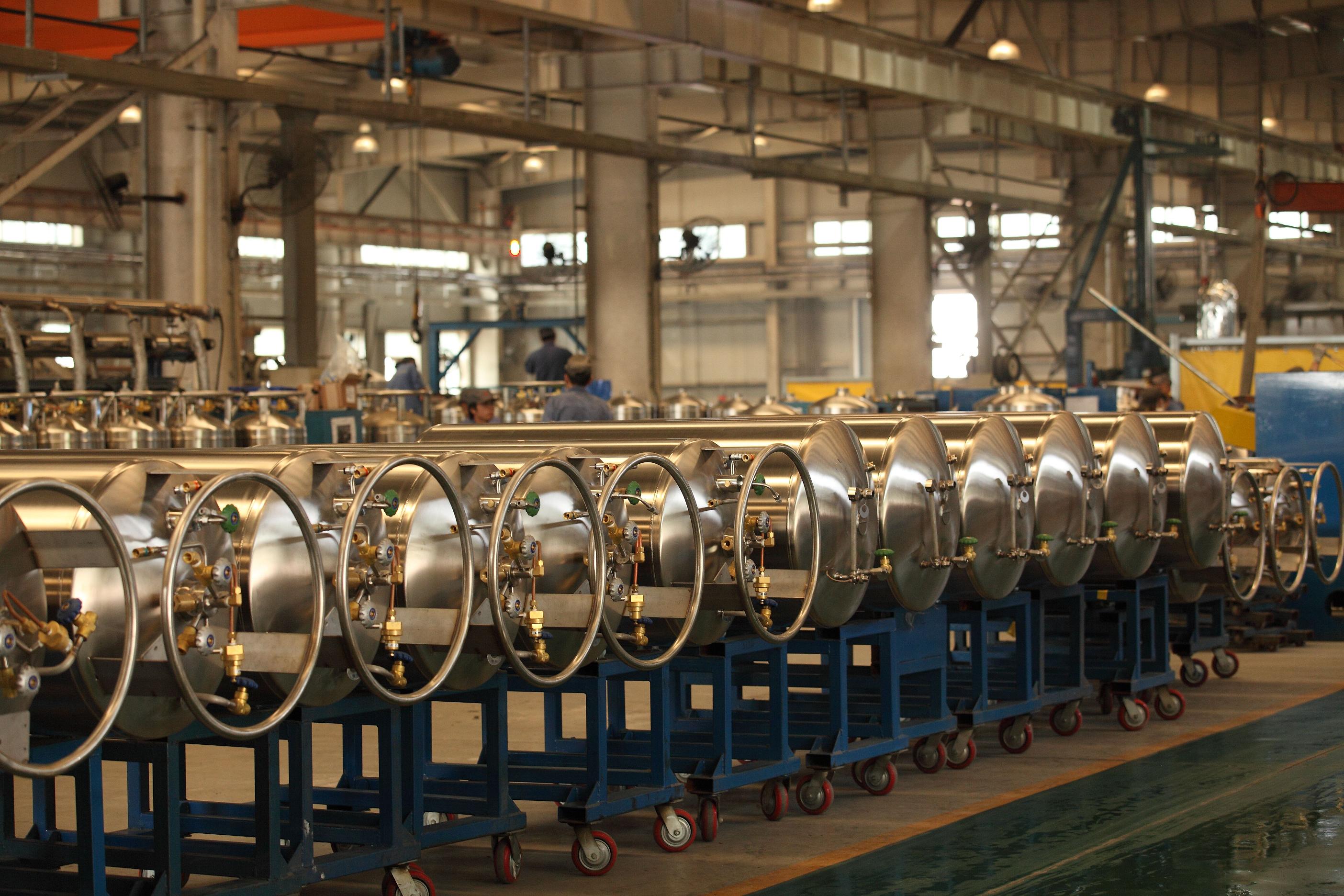 天海工业漷县生产基地拥有先进的生产流水线以及高素质的专业服务团队,主要生产低温绝热气瓶,车用LNG车载瓶及其供气系统,产品广泛应用于公交车、旅游巴士及重卡等方面。公司先后与陕西重汽、山西大运、贵阳公交、郑州宇通、厦门金旅等国内众多主机厂取得合作,并得到客户的广泛好评。产品已通过TPED欧盟认证,远销至英国,同时,在全国主要省份设立了售后服务站点,24小时全天候服务,为各城市LNG车辆运行提供保障服务。